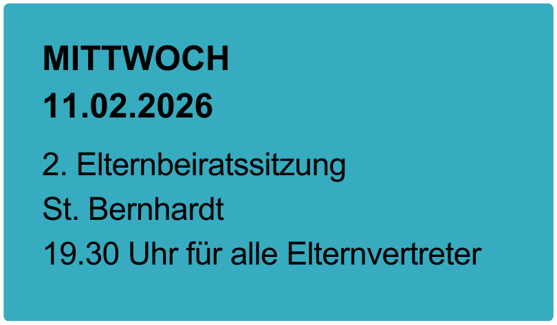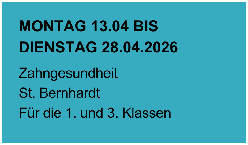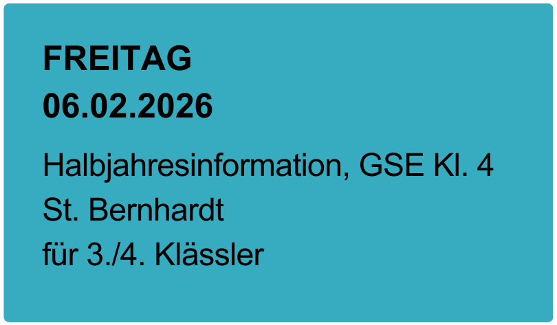 Die Grundschule St. Bernhardt liegt im Esslinger Stadtteil St. Bernhardt und freut sich über rund 250 Schüler*innen und 20 Lehrpersonen. Gemeinsam sind wir die Bernhardtiner! Wir leben und lernen an der Grundschule miteinander, voneinander und füreinander. Das macht uns aus!